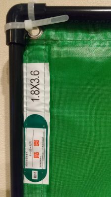 シートの大きさは1.8×3.6でメッシュタイプ(難燃素材)