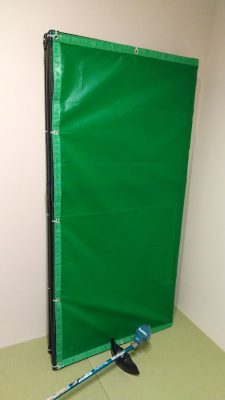 これまでの草刈りは、シートを張った飛散防止処置でしたが、これからはアンカー点が無い場所でも自立(強風で転倒しない限りですが…)するので、便利かつ効率的になると思います。