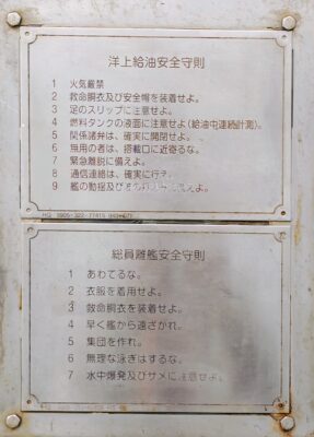 「海上給油安全守則」「総員離艦安全守則」